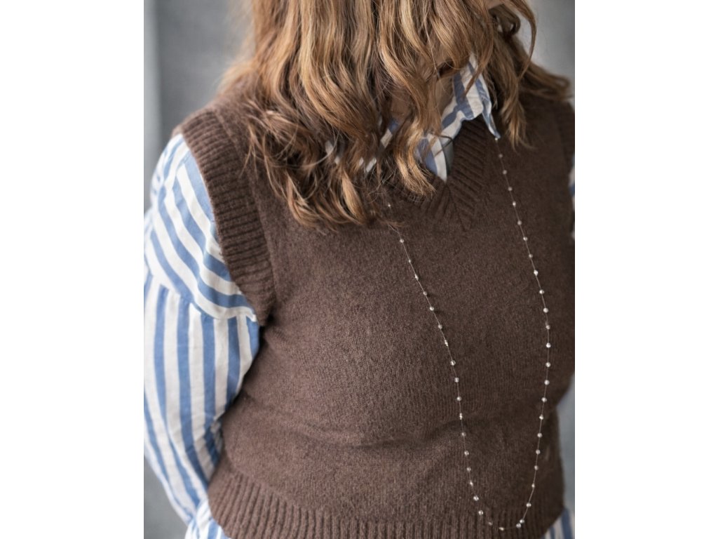 Můžete ho nechat splývat v celé délce, nebo jej díky zapínání dvakrát či třikrát omotat kolem krku – pokaždé bude působit jinak.